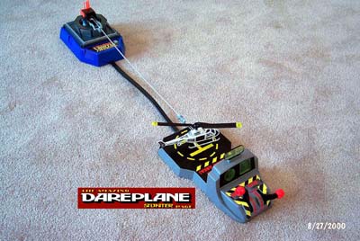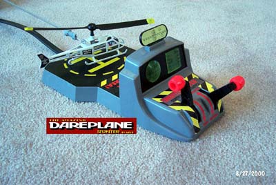 Chopper Command: Recently introduced, Chopper Command by Jasman Toys is a replica of the 1970's Vertibird helicopter toy made by Mattel. The toy features real-time flight control of a toy helicopter. The Jasman version is almost identical to the original. Minor differences include an improved lighted control panel and modified helicopter design. Surprisingly, the older Vertibird is a little more futuristic looking. The Jasman model is a little more true to life. I understand that the Jasman version is a little less powerful. Having played with the Jasman version (errr ... I mean having watched my son play with it), I don't really see any problems with it's lifting ability. It lifts all included toys just fine (the Jasman version does include more toys than the original Vertibird). Chopper Command will eat batteries. So far, I have not seen a 6 Volt 1500mA power supply on the market. I guess that means a trip to Radio Shack for the parts to make one! The introduction of Chopper Command has certainly swept ebay. Vertibird prices seem to be depressed and sales of Chopper Command helicopters is on the rise. Considering these toys can be had for a mere $15.00 at local Target stores, one would be hard pressed to fork out $100 - $400 for a used Vertibird. Unfortunately, some buyers are falling prey to ignorance and price gouging by ebay sellers. Bidding on the new Chopper Command sets has been as high as $50.00 for a toy that one could purchase for $15.00 at a local Target store. Chopper Command is now called "Chopper Patrol". The major difference seems to be a "safety" propeller. That is, a ring that protects one from getting smacked from the prop as it spins. If anyone has more information, please let me know! I had an email chat with the president of Jasman Toys: Mr. Alan Muir. Here are some excerpts of that conversation: